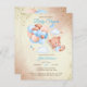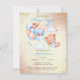 Teddy bear with brown and blue balloons and clouds baby shower invitation template.