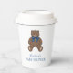 Add personalization to your baby shower decor with these teddy bear wearing a cute bow paper cups. The mom-to-be's name and "BABY SHOWER" text sits below the teddy bear.