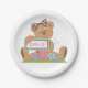 Teddy Bear with Bow Holding Smile Sign Paper Plate