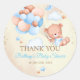 Teddy bear with brown and blue balloons and clouds classic round sticker