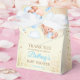 Cute teddy bear with brown and blue balloons and clouds personalised party gift favour boxes.