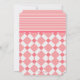 A sweet, sitting, teddy bear is featured holding a heart with little butterflies flying around him. The background has pink and white stripes and a geometric pattern. Want to spend less for this design? Print your cards on the basic, square corner paper. (FP)