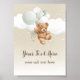 Add a soft, sweet touch to your baby shower décor with this Editable Teddy Bear with Sage Balloons Table Sign. Featuring an adorable teddy bear illustration paired with modern sage green balloons, this design is perfect for a neutral “We Can Bearly Wait” themed celebration.