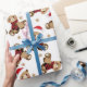 Teddy Bear with Santa Claus Hat Pattern Holiday Wrapping Paper.