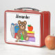 This is a cute lunch box for a child in Preschool, Kindergarten, or First Grade to carry their lunch to school. The image is a cute teddy bear surrounded by school supplies. This lunch box can be personalised by changing the name on the lunch box. This would be a great back-to-school gift.