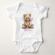 Pretty baby girl's one piece body suit done in white, with graphics of a sweet teddy bear with pink and blue wings. Personalise the pink text to suit your needs. Lovely baby shower gift idea. Mama Bear adult tee shirt is available.