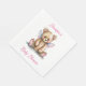 Pretty baby shower paper napkins, with graphics of a sweet teddy bear with pink and blue wing, in the middle. Personalise the pink text to suit your needs. Matching invitations, paper cups and plates are available.