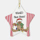 World's Best Aunt customisable teddy bear design keepsake holiday ornament features a teddy bear with holiday lights and a stocking cap and an area on the back of the ornament where you can easily personalise it with a name and year or date or other text!