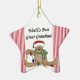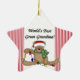 World's Best Great Grandma customisable teddy bear design keepsake holiday ornament features a teddy bear with holiday lights and a stocking cap and an area on the back of the ornament where you can easily personalise it with a name and year or date or other text!