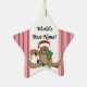 World's Best Nana customisable teddy bear design keepsake holiday ornament features a teddy bear with holiday lights and a stocking cap and an area on the back of the ornament where you can easily personalise it with a name and year or date or other text!