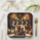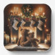 Teddy Bears In Front Of A Christmas Fireplace Paper Plate