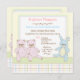 Let your guests know that triplets are on the way with this adorable original design. Two cuddly pink teddy bears and a sweet blue bunny decorate this cute shower invitation that's designed specially for a triplet shower.