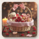 Teddy Rose Basket Romantic Valentine Heart Drink Coaster