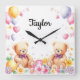Teddy time cute nursery square wall clock