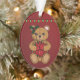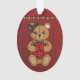 This sweet, brown teddy bear has decked the halls with lights and herself with a bit of holly so she can create a great Christmas mood for giving someone special the gift of a pretty red poinsettia.