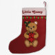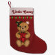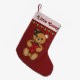 This sweet, brown teddy bear has decked the halls with lights and herself with a bit of holly so she can create a great Christmas mood for giving someone special the gift of a pretty red poinsettia. Customise the name on this stocking to create a unique place for all of those little gifts Santa leaves your family.
