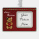 This sweet, brown teddy bear has decked the halls with lights and herself with a bit of holly so she can create a great Christmas mood for giving someone special the gift of a pretty red poinsettia. Customise the inset with a photo of your choice to make a unique decoration for your tree.