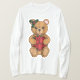 This sweet, brown teddy bear has decked herself with a bit of holly so she can create a great Christmas mood for giving someone special gift of a pretty red poinsettia.
