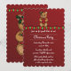 This sweet, brown teddy bear has decked the halls with lights and herself with a bit of holly so she can create a great Christmas mood for giving someone special the gift of a pretty red poinsettia. Customise the details on this invitation for your very own event.