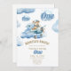 A whimsical scene featuring a cuddly bear confidently navigating an aeroplane through fluffy clouds, symbolising the journey of a child's first year.