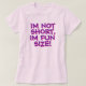 Pink ladies tee shirt with dark pink and purple lettering. The caption says: IM NOT SHORT.I FUN SIZE!