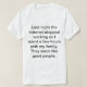 Tee shirt Last night the internet stopped working so I spent a few hours with my family. They seem like good people.