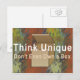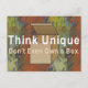 Think Unique Don't Even Own a Box catch phrase and graphic on t-shirts & gifts for all those at work, students, inventors, and creative minds in every endeavour.