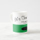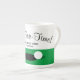 Tee-time funny tea mug gift for golf players. Cute bone China mug with ball and putt hole on putting green design. Add your own personalised quote or text. Fun present for golfer, dad, mum, instructor and fan.