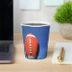 Pictured is a football and sky. You may personalise this cup.