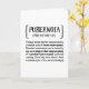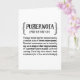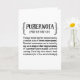 Funny definition style greeting card features the message, "PUBERNOIA [pUB-ER-noi-uh] Teenage mental disorder chraacterised by a constant state of chronic embarrassment. Disturbed consciousness can be incited by any word, action or close-range proximity of a parental figure in public with zero warning. Cured only thru electric shock treatment (or a few more birthdays). Inside has the following message but can be customised with message of your choice: Parenting teenagers is tough. Hang in there!