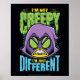This Teen Titans Go! Raven graphic contains a throwback to a classic Teen Titans Raven quote: "I'm not creepy, I'm just different". The varied play on typography and graphic imagery give a humorous tone to the previously sad quote.