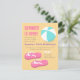 Have a chill birthday party celebration for teenagers with a beach birthday party! The bright, trendy and modern invite has a beach ball and a striped beach flip flop with tiny hearts decorations on the strap. Reverse page is that of a clam and pink starfish. Girly mix of colours which include pink, mint and purple that provides a nice contrast with the sandy beach colour background. Personalise easily with your party details.