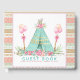 Tribal birthday party guest books with pretty teal blue and pink floral teepee and balloons on a mint, pink and gold Native American Indian design background. This cute teepee birthday party guest book is easily customised for your event by simply adding your details in the font style of your choice. This cute tribal guest book design works well for a birthday and baby shower guest book.