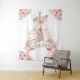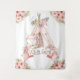 Tribal teepee baby shower backdrop with adorable baby girl fox and teepee on a pink and gold watercolor floral background. This large teepee and fox tribal baby shower table backdrop is easily customised with the text of your choice.