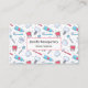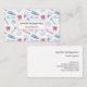 Business cards with a dental themed pattern. Featuring colourful illustrations of teeth, toothbrushes, and various dental tools.