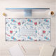 Desk mat with a dental themed pattern. Featuring colourful illustrations of teeth, toothbrushes, and various dental tools.