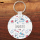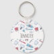 Personalised keychain with a dental themed pattern. Featuring colourful illustrations of teeth, toothbrushes, and various dental tools.