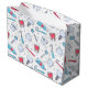 Gift bag with a dental themed pattern. Featuring colourful illustrations of teeth, toothbrushes, and various dental tools.
