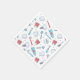 Paper napkins with a dental themed pattern. Featuring colourful illustrations of teeth, toothbrushes, and various dental tools.