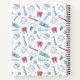 Spiral notebook with a dental themed pattern. Featuring colourful illustrations of teeth, toothbrushes, and various dental tools.