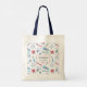 A tote bag with a dental themed pattern. Featuring colourful illustrations of teeth, toothbrushes, and various dental tools.