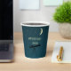 Create personalised paper plates that are perfect for birthday parties and more. Whether you're throwing a star-gazing or astronomy themed party or are just have a good old fashioned slumber party these fun custom paper cups are a perfect choice. They feature an illustration of a telescope silhouetted against a midnight blue coloured night sky with pale yellow stars and a crescent moon above. Your message appears in the centre in pale yellow lettering.