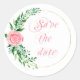 Elegant gold ring watercolor pink floral “Save the Date” sticker.  Perfect for envelope seals.