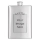 The product is a good size and came exactly as it was pictured. The lid is not attached to the flask, which could be dangerous on drunken nights... The print came out surprisingly well and looks very sharp. Would definitely recommend.