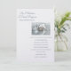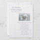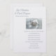 This wedding invitation is shown in a classic layout on a White Pearl Shimmer background with a modern layout. Photograph of two wedding rings tied on a White satin pillow. Text in a Dusty Blue colour. Customise this item by taking the sample text and putting your information in it instead.