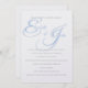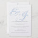 This wedding invitation is shown in a classic layout on a White background shown in a paper choice of Peal Shimmer paper. Select your choice paper. A graphic of Blue and pastel Blue is formed of the couples first initial combined with their names. Body text shown in a Silver-Grey-tone-colour.. Customise this item by taking the sample text and putting your information in it instead.
