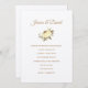 This wedding invitation is shown in a classic layout on a White background shown in a paper choice of 110 lb. felt paper. Select your choice paper. Graphic of a sepia rose in centre. Couple's Names highlighted in a Golden-colour at top. Body text shown in Golden-colour beneath the rose. Customise this item by taking the sample text and putting your information in it instead.