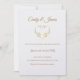 This wedding invitation is shown in a classic layout on a White background shown in a paper choice of Peal Shimmer paper. Select your choice paper. Fancy swirl heart graphic in Gold colour. Couple's Names highlighted in a Golden-colour at top. Body text shown in Golden-colour beneath the heart. Customise this item by taking the sample text and putting your information in it instead.