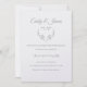 This wedding invitation is shown in a classic layout on a White background shown in a paper choice of Peal Shimmer paper. Select your choice paper. Fancy swirl heart graphic in Silver-Grey colour. Couple's Names highlighted in a Silver-Grey-colour at top. Body text shown in Silver-Grey-colour beneath the heart. Customise this item by taking the sample text and putting your information in it instead.