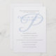 This wedding invitation is shown in a classic layout on a White background shown in a paper choice of Peal Shimmer paper. Select your choice paper. Graphic shown in Pastel Blue is the newlyweds last initial. Personalised first names. Body text shown in a Silver-Grey-tone-colour.. Customise this item to your preference.
